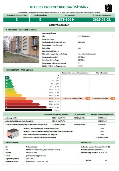 Certificate on Energy Performance of buildings – Budapest / Pest county