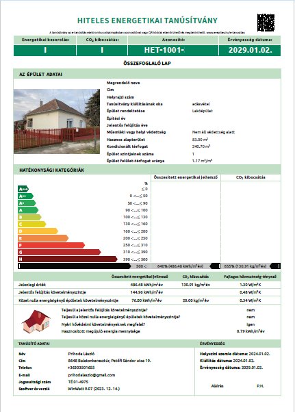 Certificate on Energy Performance of buildings – Somogy / Zala county
